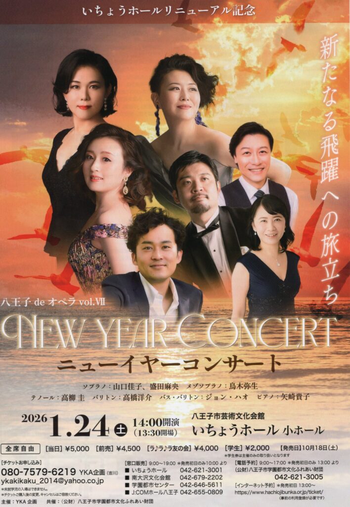 山口佳子が、2026年1月24日土曜日、八王子市芸術文化会館いちょうホールで行われる『ニューイヤーコンサート』に出演いたします。